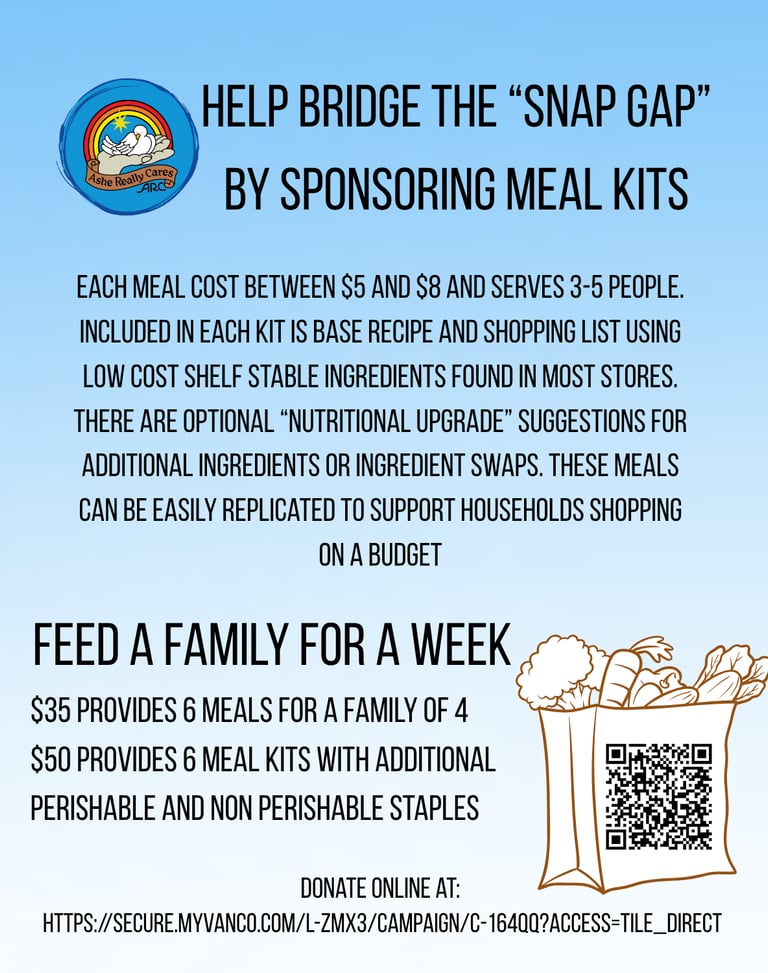 To support the additional needs of our community, ARC is collecting and building Meal Kits. The kits will be used to help support our neighbors who are facing food insecurity.